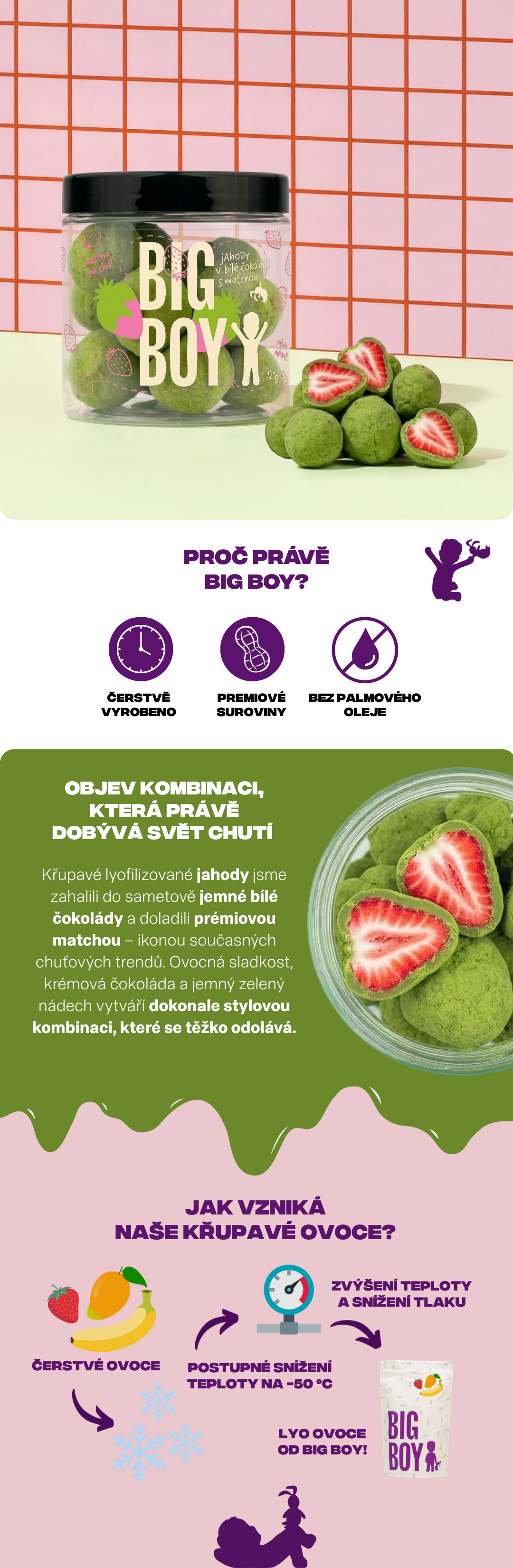 BIG BOY® Jahody v matcha a bílé čokoládě 120 g