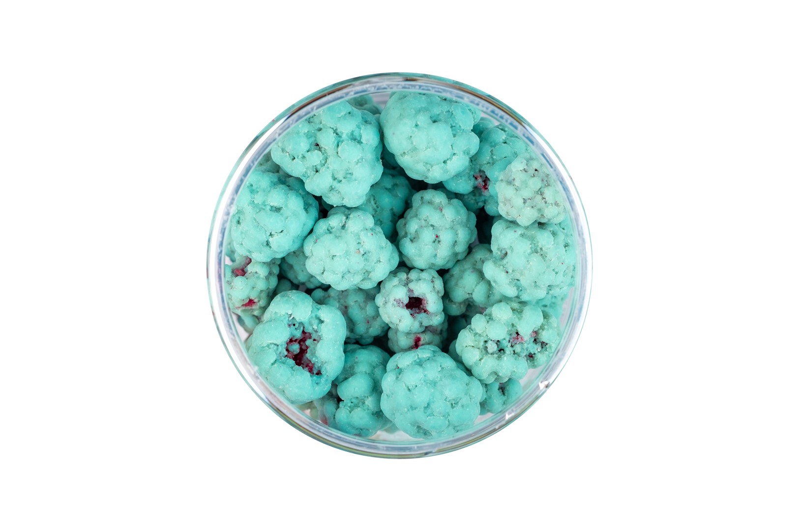 Podlehni Modré malině! 100% ovoce jemně sušené mrazem, plné chuti a křupavé textury. BIG BOY vyrábí veškeré lyo ovoce v čokoládě šetrně a bez použití leštidel, což zaručuje přitažlivý matný vzhled. Mňam! Díky promyšlenému technologickému procesu nezmizí z vysušeného ovoce žádné potřebné živiny. I jeho božská intenzivní chuť zůstává nedotčena. Každá jedna malá malina je pro nás stejně důležitá. A každý vysušený kus ovoce je pro nás klenotem.