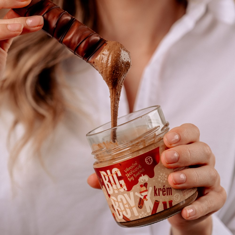 Lískové ořechy pražené 57 %, třtinový cukr, mléko sušené odstředěné, kokosový cukr, skořice 1 %. Může obsahovat stopy arašídů a ostatních skořápkových plodů.