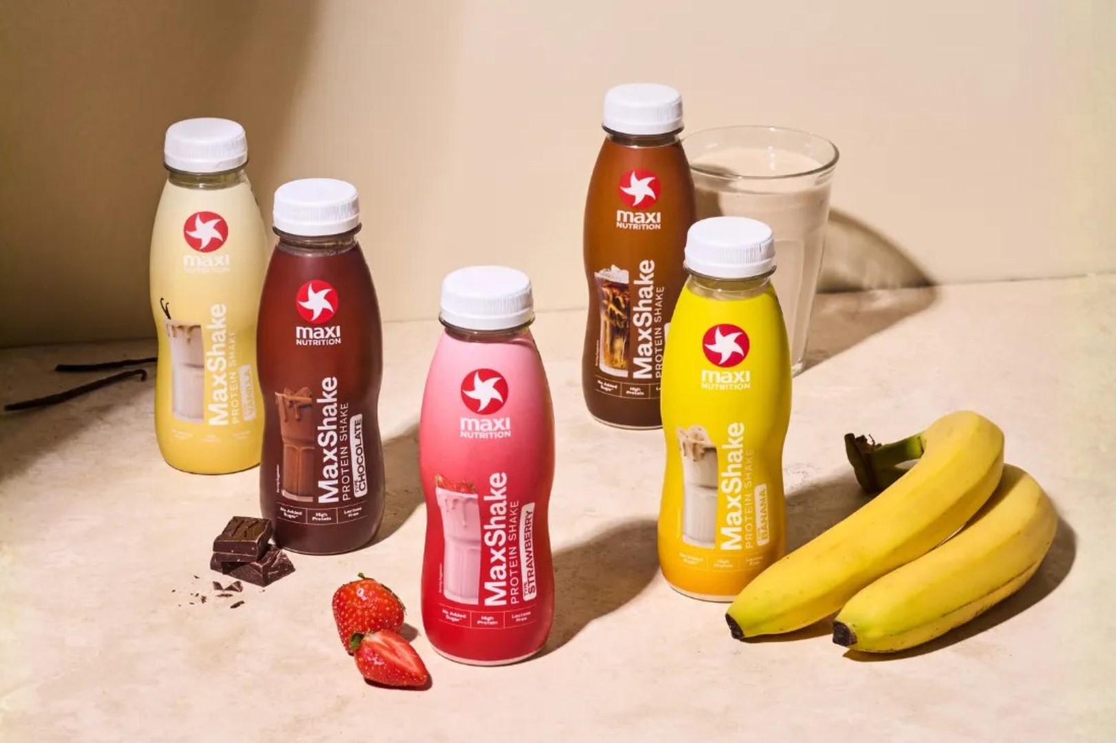 MAXSHAKE je praktický, předem připravený a chutný proteinový koktejl. MaxShake je mléčný koktejl s vysokým obsahem bílkovin, nízkým obsahem tuku a bez přidaného cukru. Speciálně vyvinutý tak, aby poskytoval 25 g bílkovin v jedné láhvi. Bílkoviny přispívají k udržování a růstu svalové hmoty.