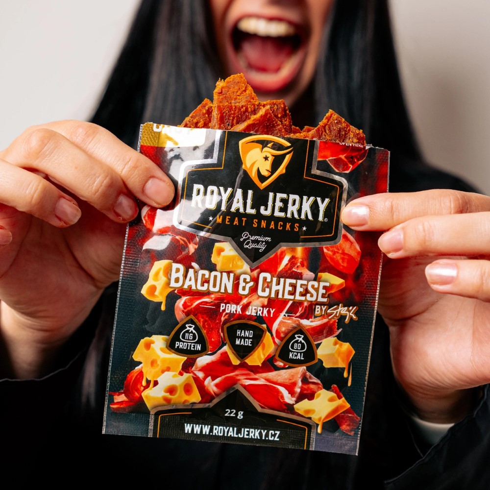 ROYAL JERKY - BACON & CHEESE 12g - vepřové sušené maso s příchutí slaniny a sýru