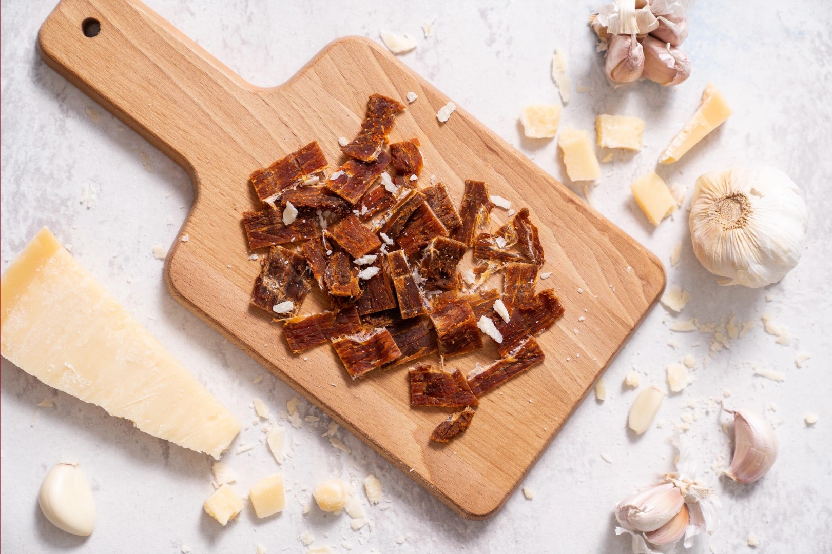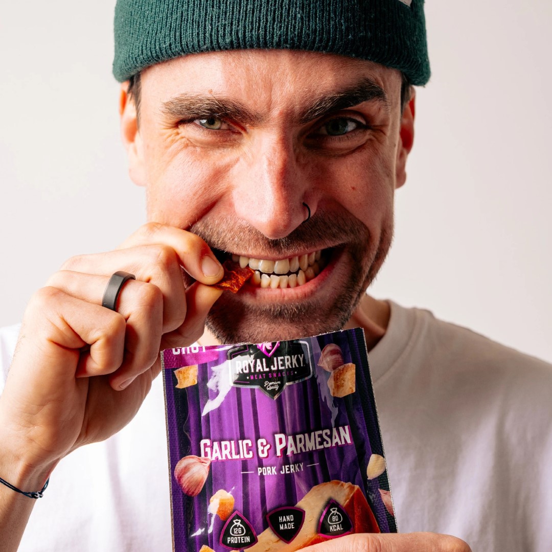 � ROYAL JERKY - GARLIC & PARMESAN 22 g - vepřové sušené maso s příchutí česneku a parmezánu